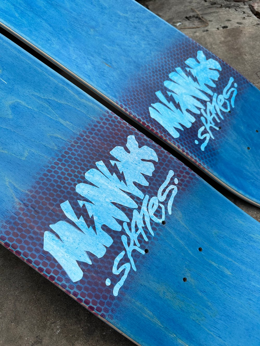 All decks are hand glued, cold pressed, shaped, painted, screen-printed, glossed, and shrink wrapped one at a time by the Manak family in our backyard in San Jose, Ca. We only use the finest North American Hard Rock Maple. We add extra press time and cure times to make a higher quality, better performing deck. Hand-glued leads to a stiffer, longer-lasting board with everlasting pop. In most cases, our boards will last much longer than a factory-made deck. Low tech, no tech! 🤙