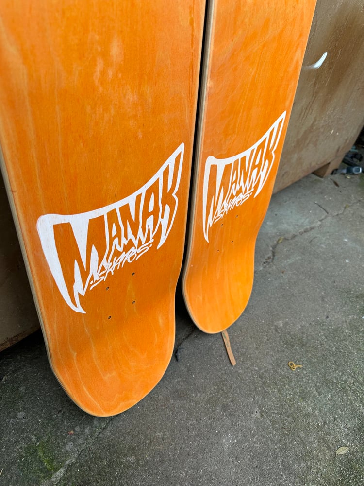 All decks are hand glued, cold pressed, shaped, painted, screen-printed, glossed, and shrink wrapped one at a time by the Manak family in our backyard in San Jose, Ca. We only use the finest North American Hard Rock Maple. We add extra press time and cure times to make a higher quality, better performing deck. Hand-glued leads to a stiffer, longer-lasting board with everlasting pop. In most cases, our boards will last much longer than a factory-made deck. Low tech, no tech! 🤙