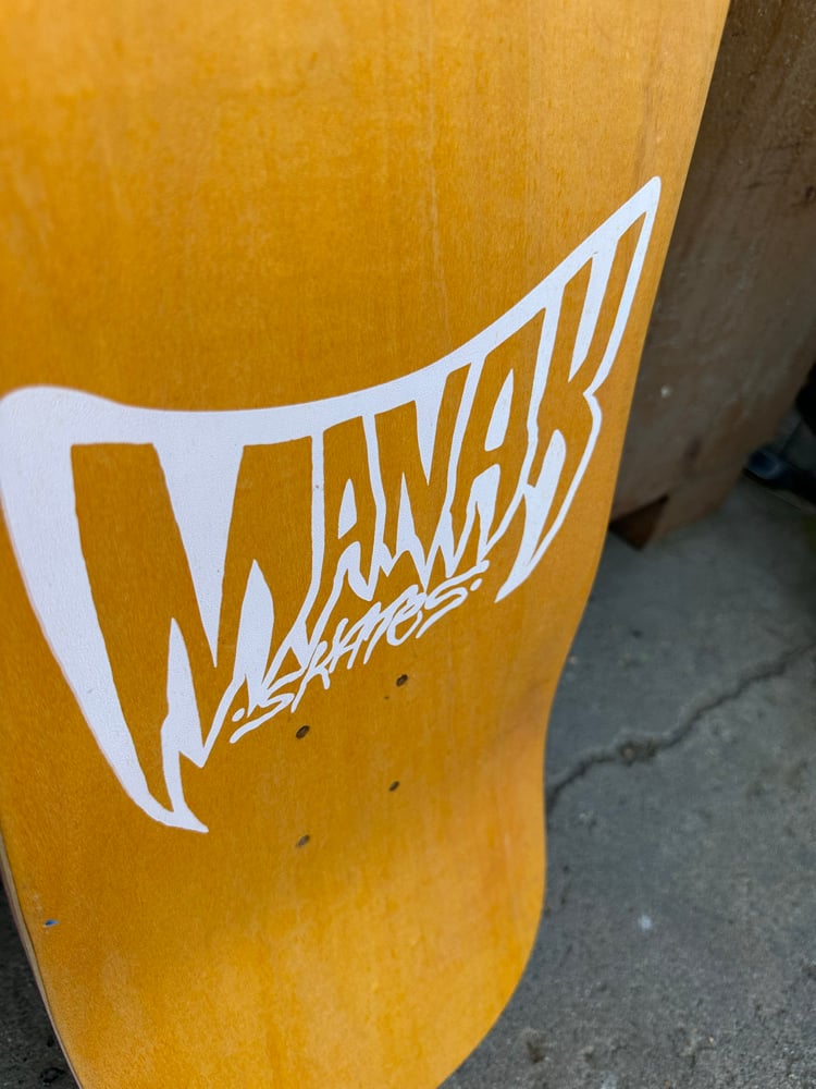 All decks are hand glued, cold pressed, shaped, painted, screen-printed, glossed, and shrinkwrapped one at a time by the Manak family in our backyard in San Jose, Ca. We only use the finest North American Hard Rock Maple. We add extra press time and cure times to make a higher quality, better performing deck. Hand-glued leads to a stiffer, longer-lasting board with everlasting pop. In most cases, our boards will last much longer than a factory-made deck. Low tech, no tech! 🤙