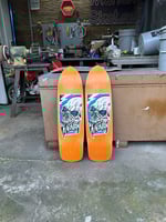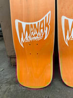 All decks are hand glued, cold pressed, shaped, painted, screen-printed, glossed, and shrinkwrapped one at a time by the Manak family in our backyard in San Jose, Ca. We only use the finest North American Hard Rock Maple. We add extra press time and cure times to make a higher quality, better performing deck. Hand-glued leads to a stiffer, longer-lasting board with everlasting pop. In most cases, our boards will last much longer than a factory-made deck. Low tech, no tech! 🤙