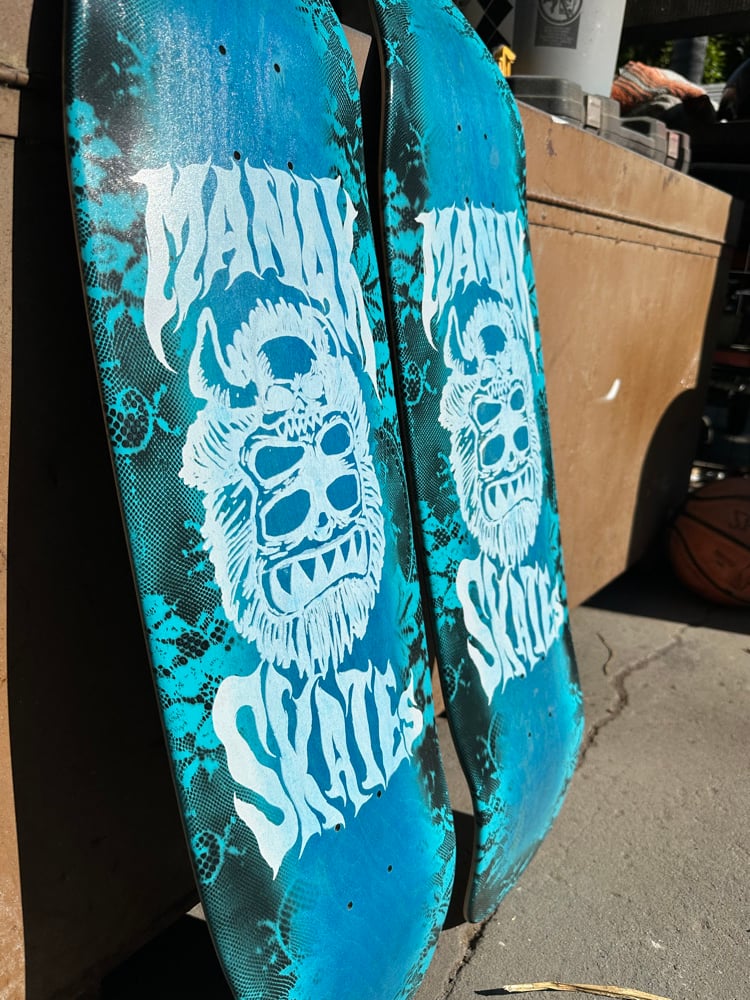 All decks are hand glued, cold pressed, shaped, painted, screen-printed, glossed, and shrinkwrapped one at a time by the Manak family in our backyard in San Jose, Ca. We only use the finest North American Hard Rock Maple. We add extra press time and cure times to make a higher quality, better performing deck. Hand-glued leads to a stiffer, longer-lasting board with everlasting pop. In most cases, our boards will last much longer than a factory-made deck. Low tech, no tech! 🤙
