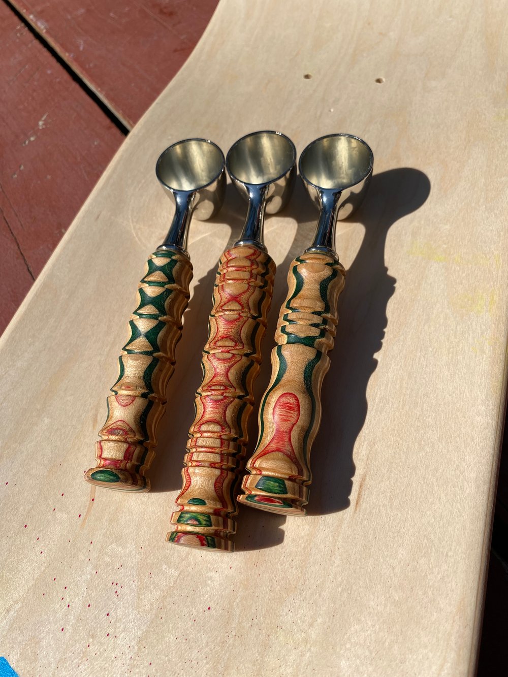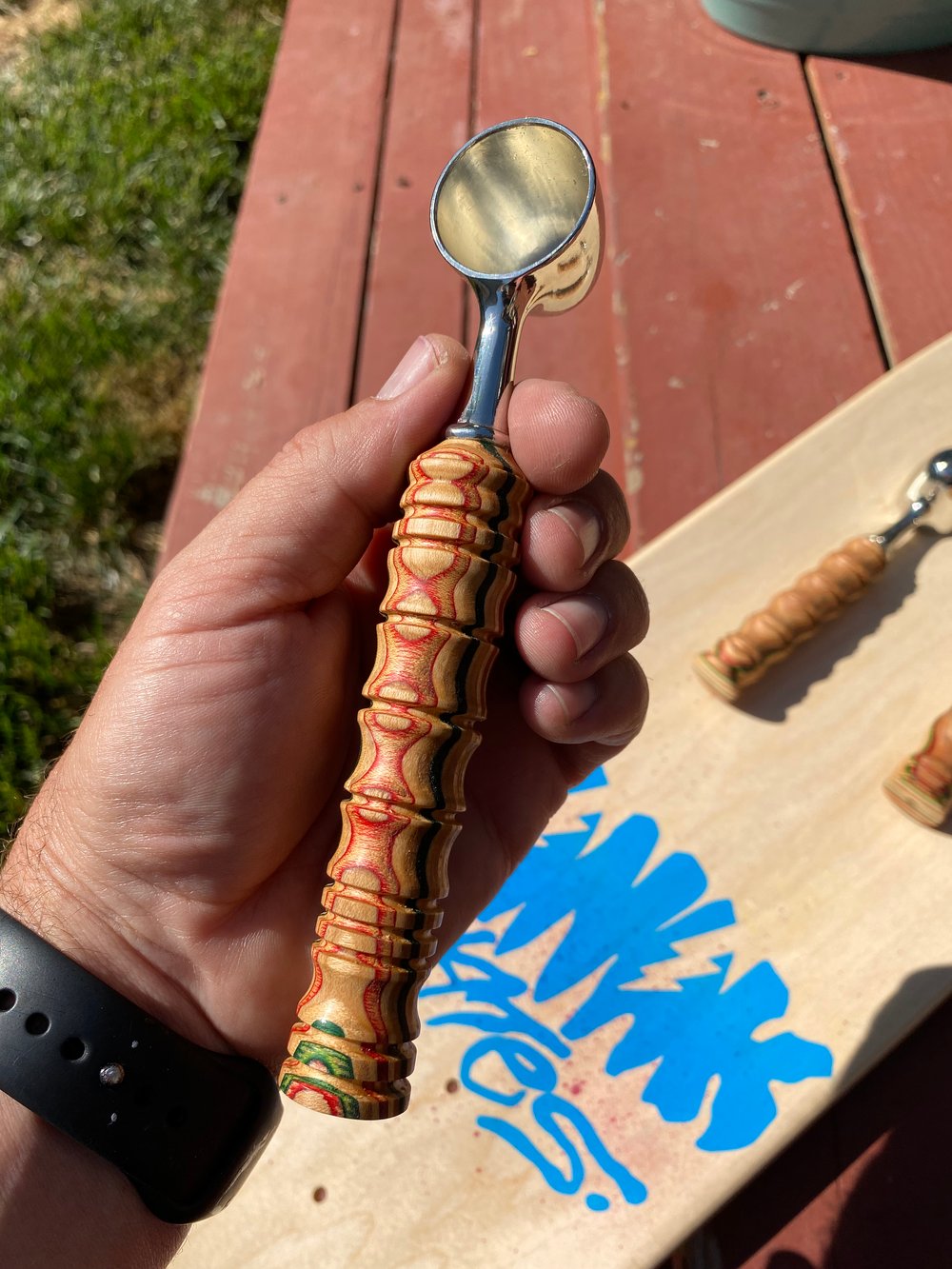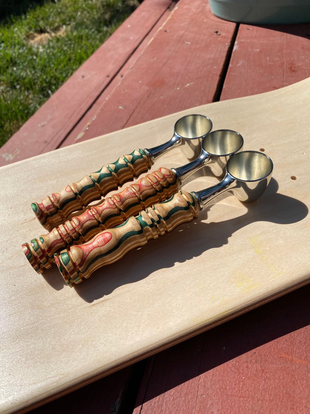 Coffee Scoop made from Recycled Skateboards. Polished with food safe oils and beeswax. 3 made.