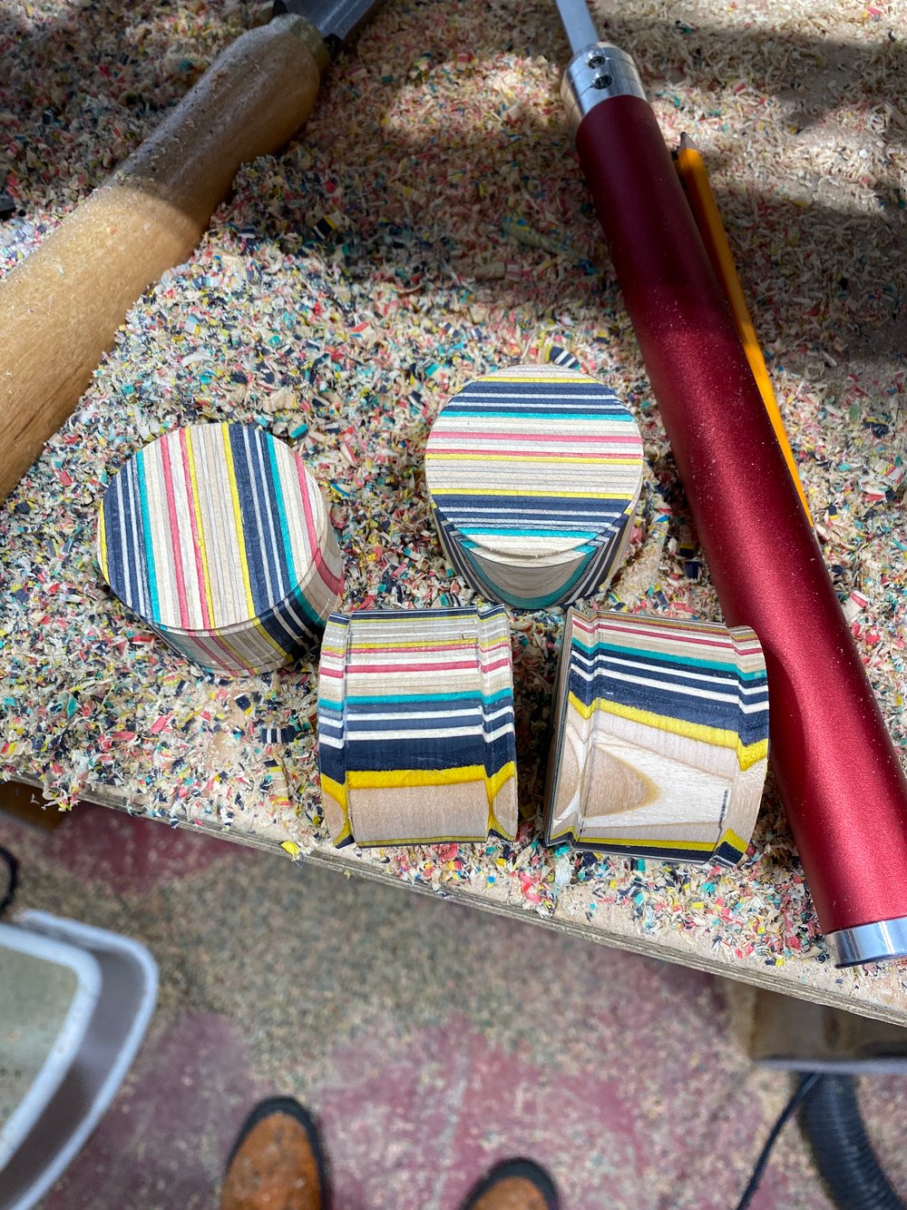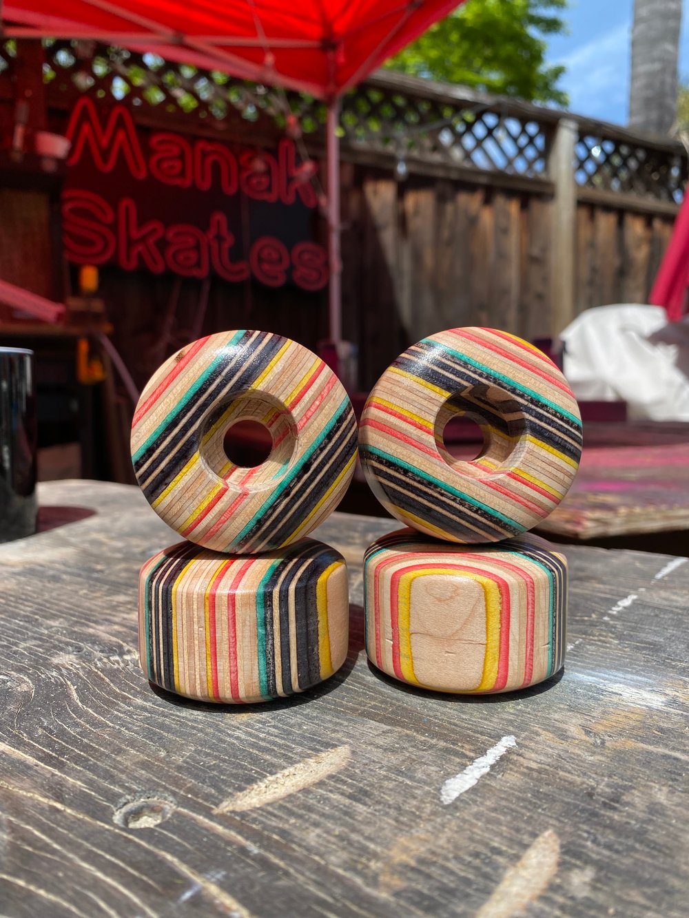 4 Wheels made from recycled skateboards. One set made. See how they were made on our Instagram reels.